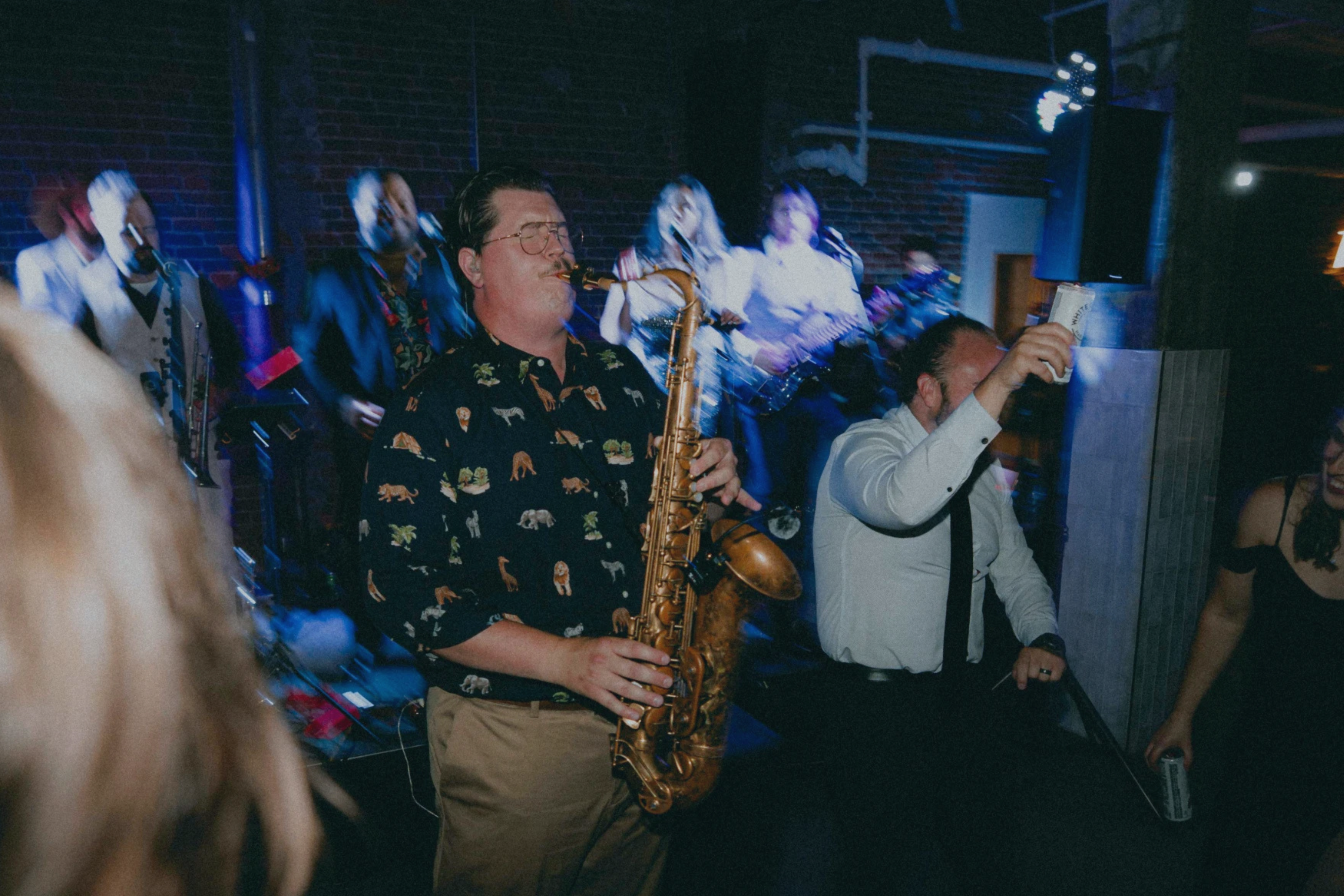 We loved having these guys play for our wedding! Everything about their set is fantastic. The addition of the saxophone and trumpet players adds so many fun elements to a traditional wedding band. They were great with song requests and still gave us enough time to play our own music as well. Incredible energy and musicality. 3 years later and we still have people telling us how great the band at our wedding was!